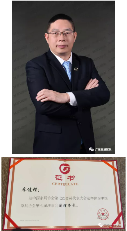 本次大會(huì)上,思進(jìn)家具憑借過(guò)硬的品牌實(shí)力,思進(jìn)董事長(zhǎng)兼創(chuàng)始人廖健程先生榮幸當(dāng)選為“中國(guó)家具協(xié)會(huì)副理事長(zhǎng)”,思進(jìn)家具再一次以實(shí)力,印證了其在品牌、產(chǎn)品、服務(wù)等方面的行業(yè)地位和創(chuàng)新精神。
